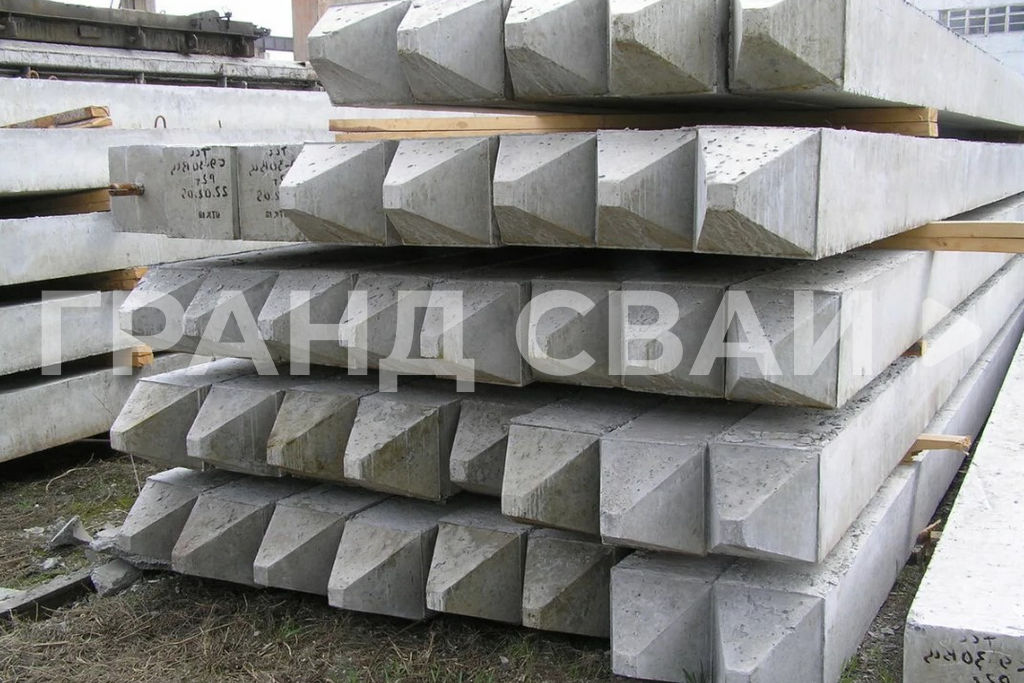 Забивные сваи — это железобетонные изделия, которые представляют собой стержни длиной 3000мм с квадратным сечением 150х150мм и одним заостренным концом. Сваи погружают в грунт ударным методом при помощи сваебойной установки.