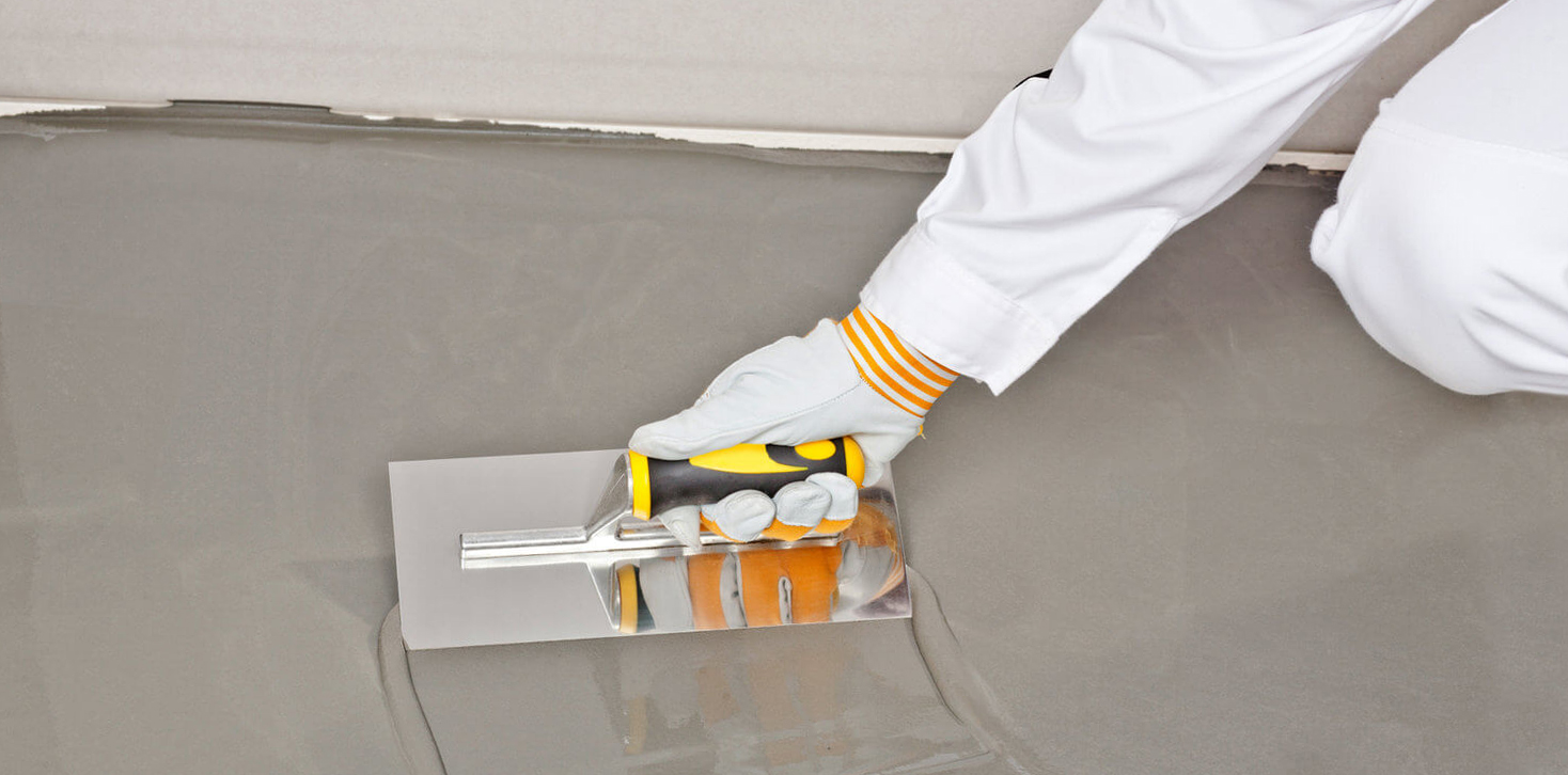 - Бетонный пол выравнивают при помощи специализированных смесей.