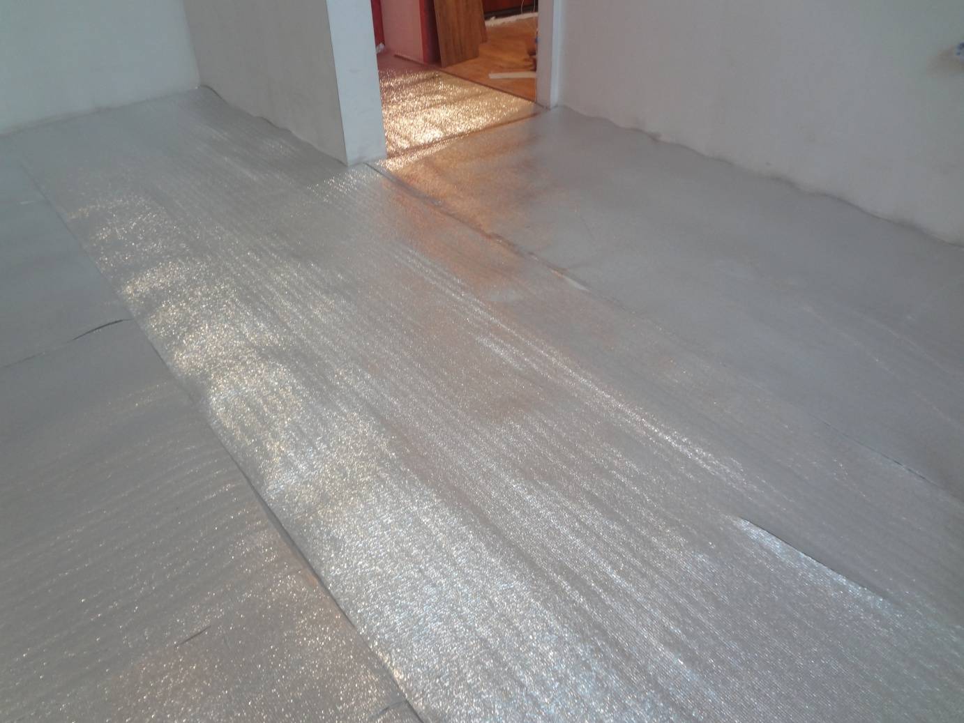 На одном заказе в частном доме с ленточным фундаментом меня попросили настелить под вспененную подложку пароизоляционную пленку с перфорацией. Знаете, в такой гидроизоляции виден глубокий смысл. При должной изолированности первого этажа постройки и проникновения остаточной влажности в финишный слой чернового пола, эту самую оставшуюся влагу такая пароизоляция способна рассеивать дозированно. Помним, что пробковая, хвойная подложка, туплекс могут по своей конструкции справиться с незначительным количеством влаги, рассеивая ее внутри своей структуры.