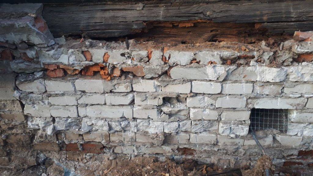 Это плачевное состояние основания, которое подразумевает, что ремонтировать больше нечего. В данном случае наилучший выход из сложившейся ситуации — полное строительство нового дома.
