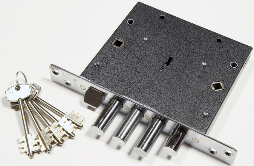 Такой принцип запорного механизма был изобретен достаточно давно. Но до сих пор эта конструкция считается самой надежной. Она наилучшим образом защищена от всех способов взлома. Для сувальдного механизма трудно подобрать отмычку, а также потребуется немало усилий, чтобы выбить или высверлить его. Если требуется обеспечить максимальную защиту, стоит выбрать модель с бронированными пластинами.