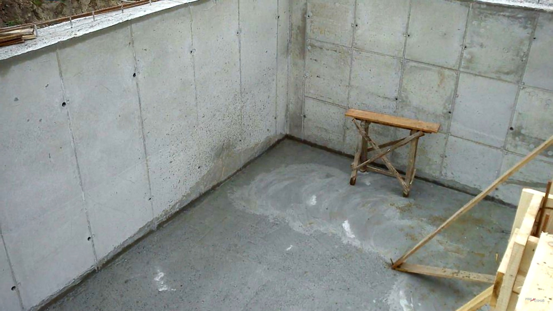 После тщательной утрамбовки пола и стен переходим к заливке напольной бетонной плиты с последующей гидроизоляцией.