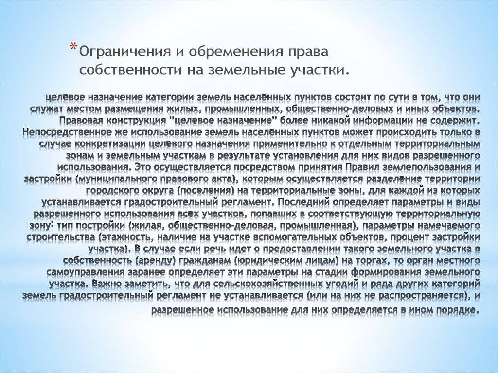 - Определять особенности гражданского оборота наделов, ограничений в праве их использования.