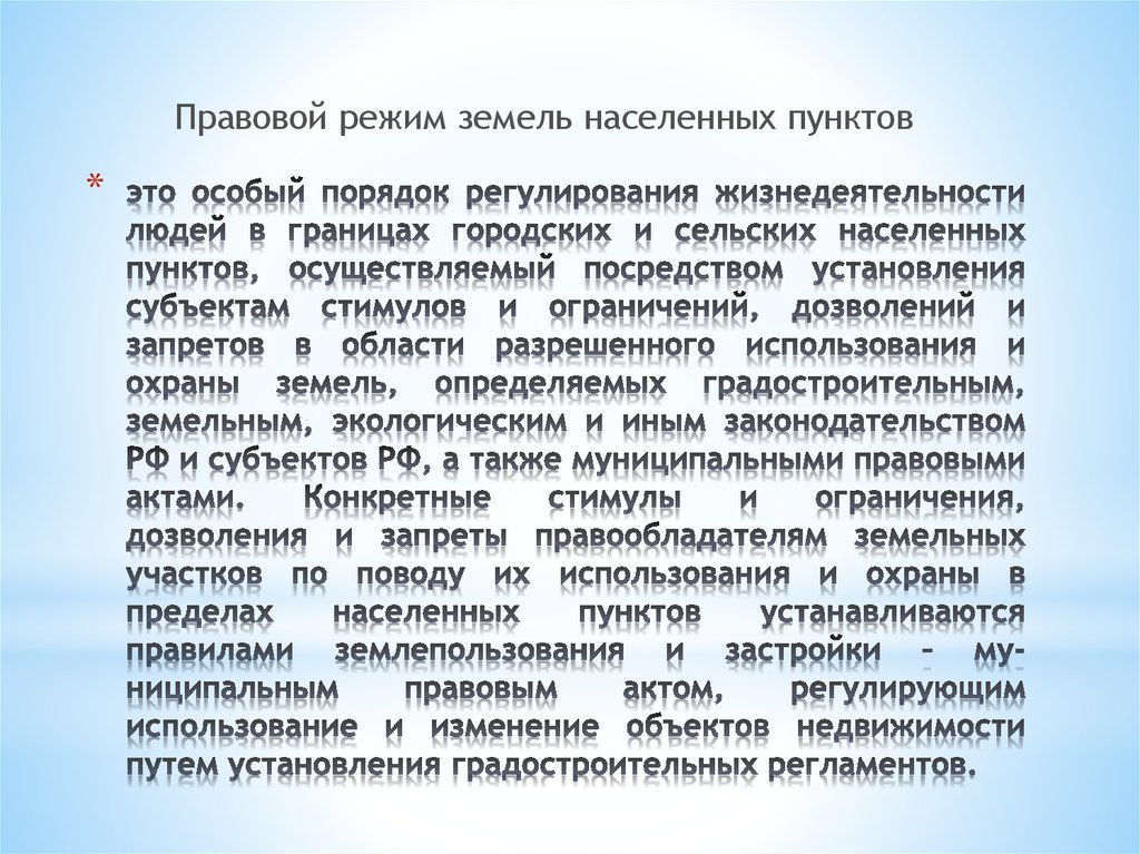 При использовании земель, относящихся к населенным пунктам, пользователями должны соблюдаться нормы законодательных актов, разработанных в данном направлении. Перед началом эксплуатации необходимо ознакомится с нюансами таких земель.