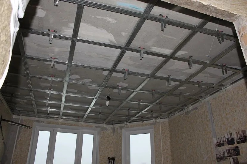 - Подшивного потолка – поверх металлического каркаса вкручивается гипсокартон.