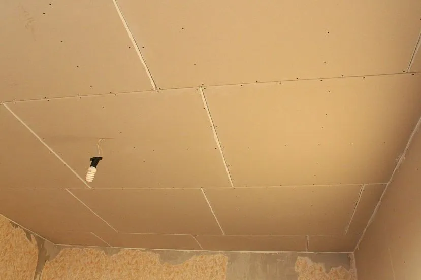- Обшейте потолок гипсокартоном.